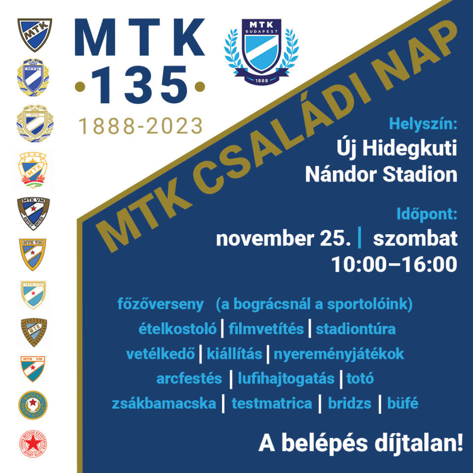 Az MTK (Magyar Testgyakorlók Köre) megalakulásának 135. évfordulójára nagyszabású családi napot szervez. Ennek során